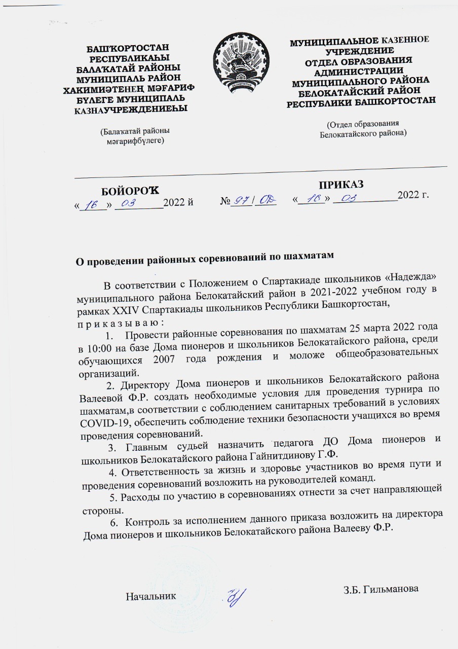 В соответствии с Положением о Спартакиаде школьников "Надежда", 25 марта в Доме пионеров и школьников прошли районные соревнования по шахматам. В турнире приняли участие юные шахматисты в возрасте до 15 лет, из 7 школ района. Первое место заняла команда из школы №2 с. Новобелокатай, Второе место - школьники из с. Левали. И третье место заняли шахматисты из с.Емаши. Поздравляем победителей и желаем успехов в дальнейшей борьбе.