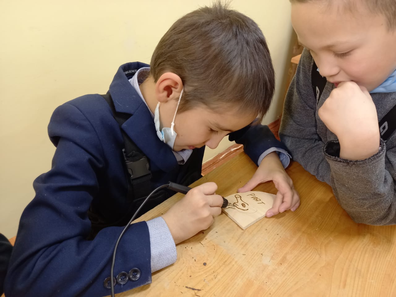 Ребята узнали об искусстве складывания из бумаги — оригами. Порисовали. Сплели из бисера браслеты. Мальчики выжигали по дереву, а девочки украсили гипсовые магниты своими руками. А так же узнали, что такое ганутель. Надеемся ребятам у нас понравилось и они придут к нам на занятия еще не раз.