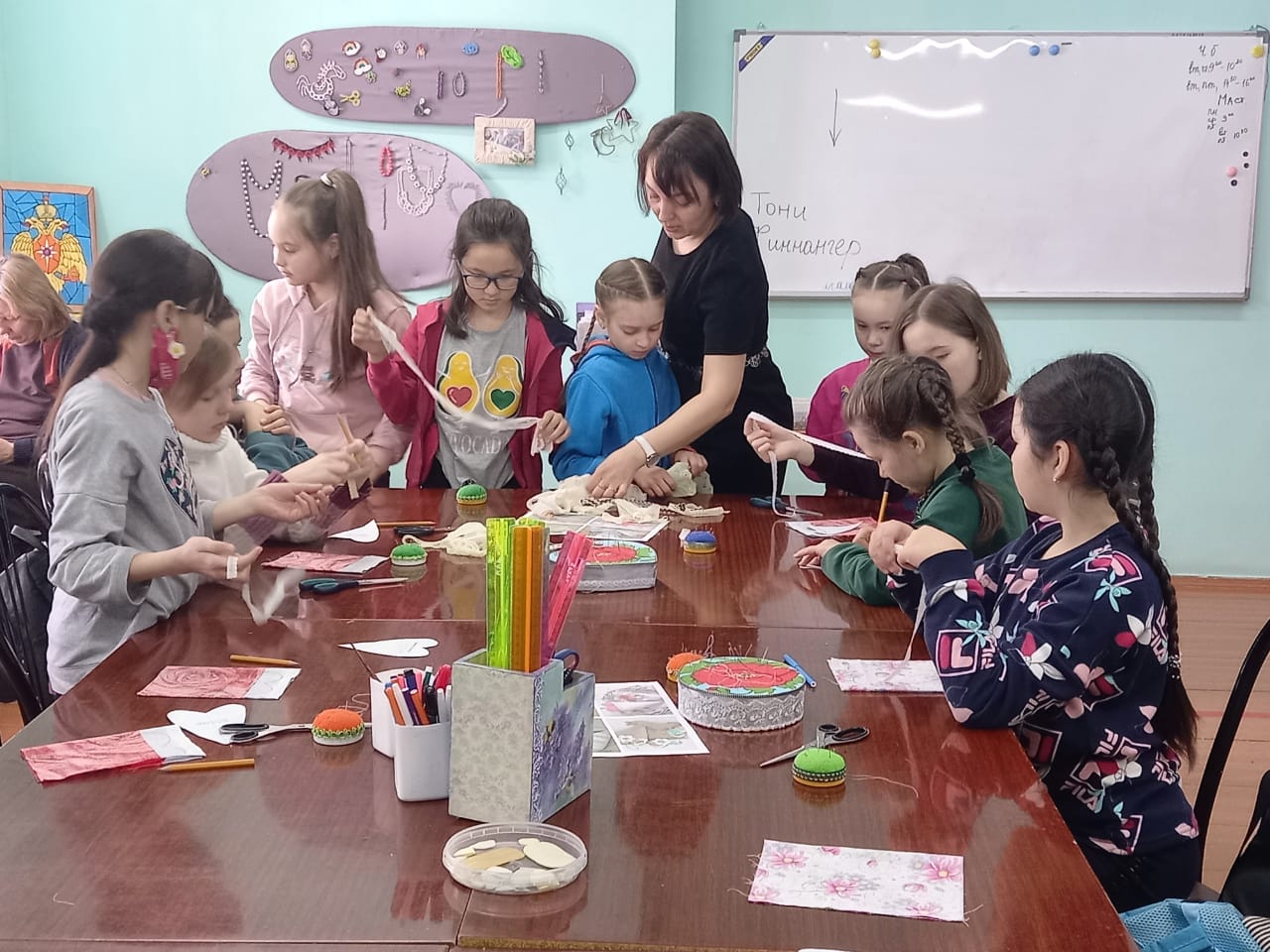 В продуктивной части занятия: своими руками, при умелом руководстве педагога Мингажевой Р.Я., ребята смастерили заколки в технике канзаши. Теперь полюбившуюся технику они смогут самостоятельно использовать не только в заколках, но и в любых других аксессуарах.